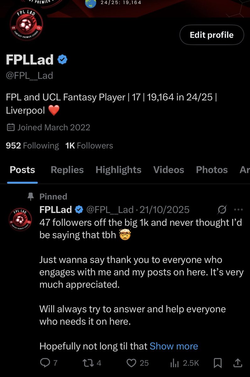 1️⃣0️⃣0️⃣0️⃣ ✅ What a milestone. Thank you to everyone who’s followed and engages with me all the time it’s massively appreciated people! Only been on here just under a year and it’s mental to see 1k hahaha Some top top people on here. Very much appreciated people ❤️ #FPL