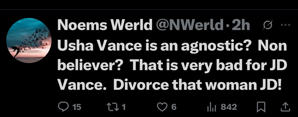@SpencerHakimian @sumsumnoodle I’m betting 100 to 1 that JD Vance will ditch Usha the second she starts dragging him down in his political ambitions. This guy’s already consumed by his thirst for power.