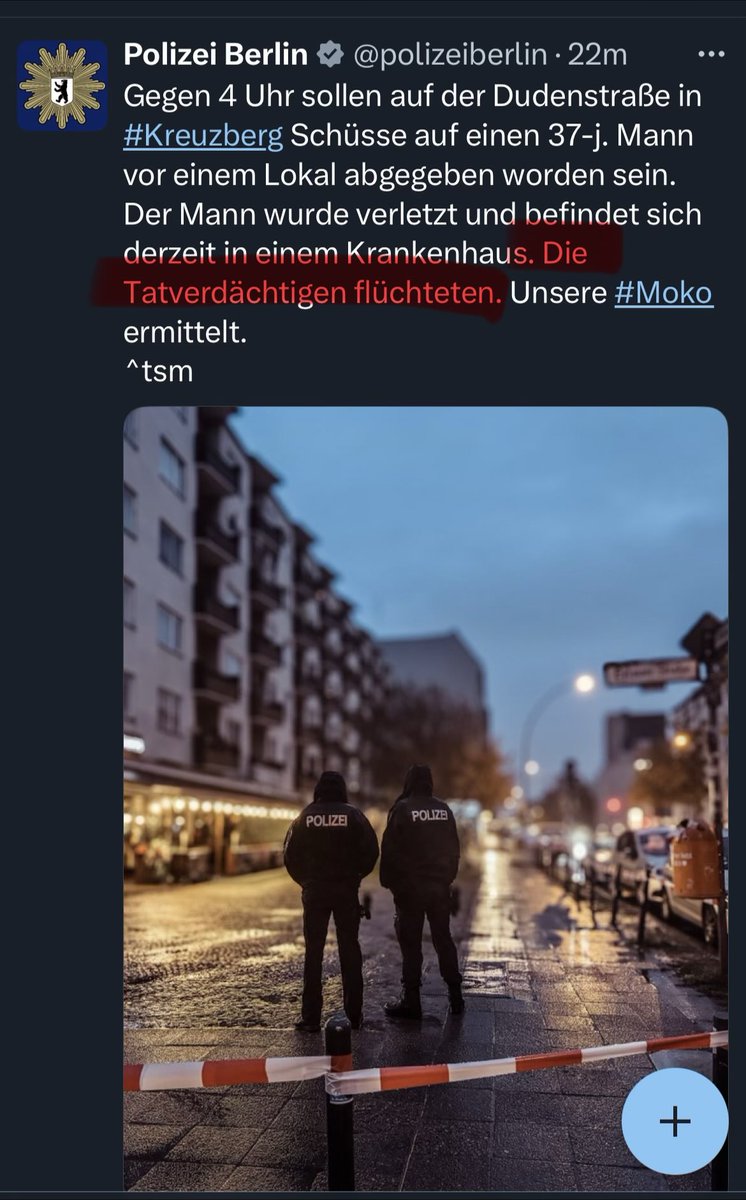 @polizeiberlin Gefährliches Shithole eben - während eine dumme und ignorante Politik immer noch NICHTS unternimmt, um die Stadt sicherer zu machen. 😡 Ich wette, jetzt werden in der Dudenstraße Schilder aufgestellt, dass dort der Gebrauch von Schusswaffen eigentlich verboten ist. Dummland DE!