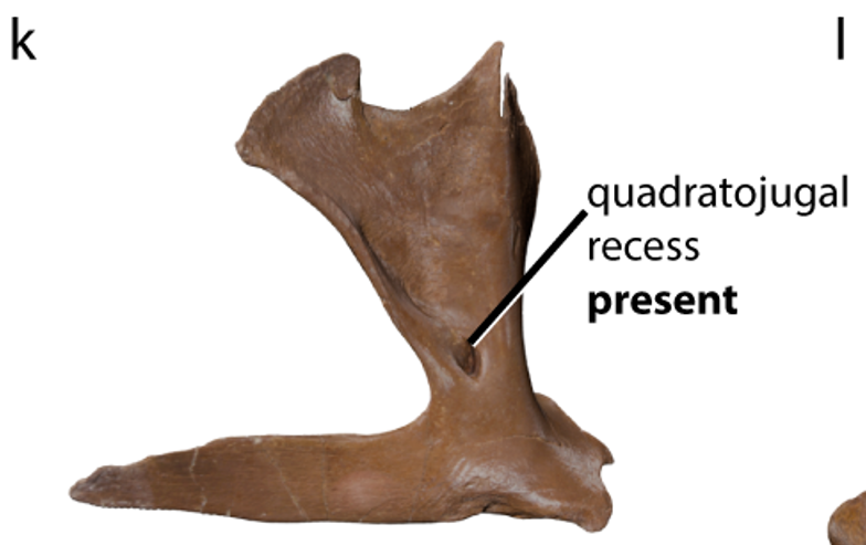 Second, Nanotyrannus has features of its skull that do not change during growth in other tyrannosaurs, and which we think *cannot* change during growth in any reptile. For instance, Nanotyrannus famously has a sinus in the quadratojugal bone...