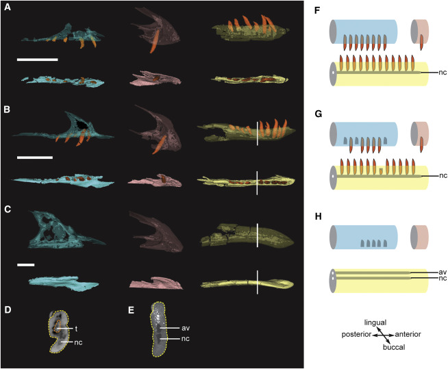Some very odd theropods, distantly related to tyrannosaurs, did entirely replace their teeth with beaks during growth. But even in these species, we can see an internal canal in the jaws marking where the tooth roots had been.