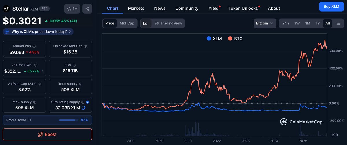 👇Stelltard 🔴XRP-lite pre-mined banker coin. Fake of a fake. 🔴Permissioned federated validators controlled by insiders. 🔴Literally nobody cares. ➡️Free market seems to agree. 📉
