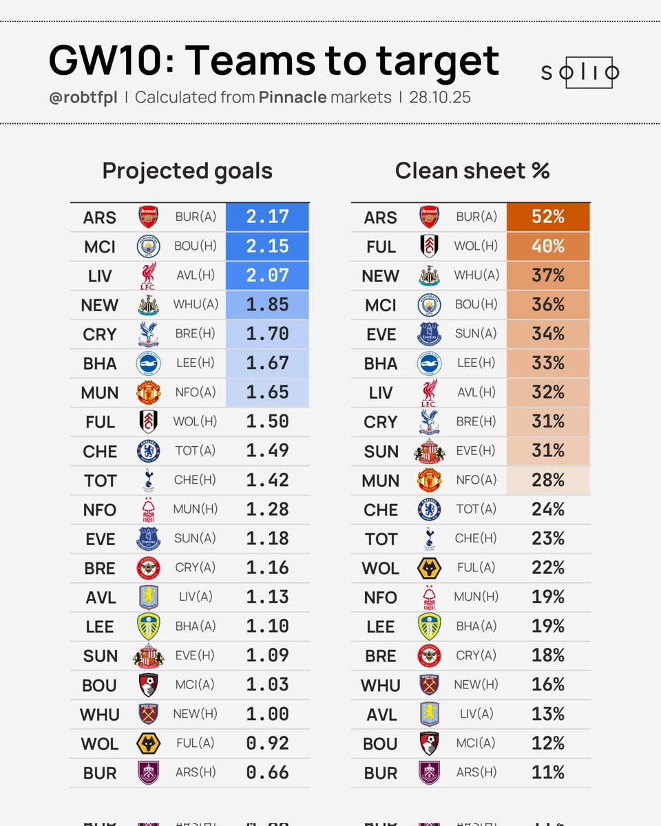 ๐ GW10 ULTRATHREAD ๐ฅ ๐งฉ Team-by-team analysis ๐ผ Buy / Keep / Sell Guide ๐ Projected Goals & Clean Sheet % ๐ฅ Saka vs Haaland ๐ฆ ๐งต Letโs dive into everything you need to know for GW10 ๐ #FPL