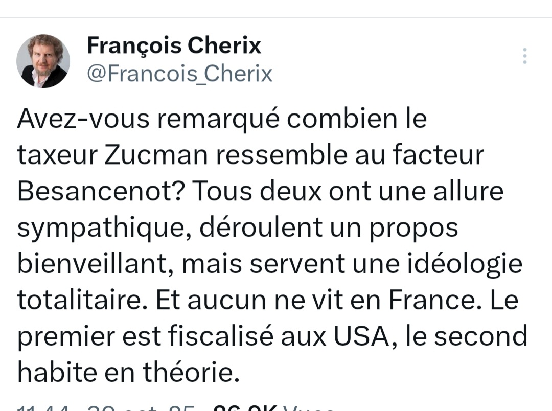 @marinetondelier Oui oui, le RN au service des riches, pendant que Marine Tondelier, elle, contribue à tondre… nos agriculteurs. 😏 La “taxe Zucman”, c’est juste de la poudre magique pour faire croire qu’on s’attaque aux milliardaires, alors qu’en vrai, c’est juste du maquillage…