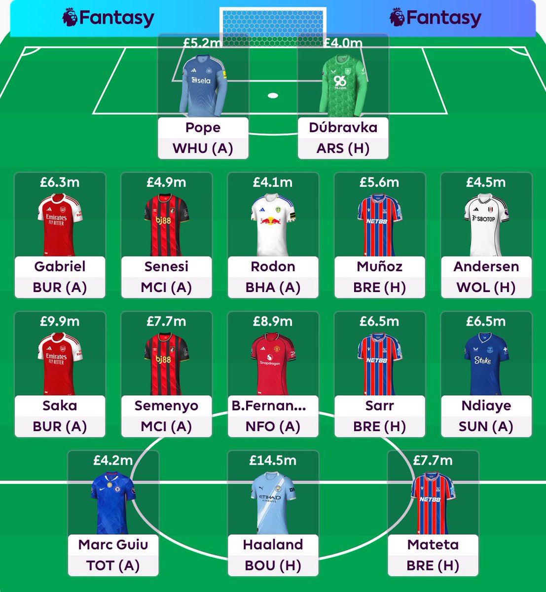 š My Team Some of you will have seen that I strongly pondered selling Haaland, and bringing in (& potentially) captaining Salah. Iāve just decided against it. I say this so you understand why thereās no talk of Salah in this thread. Enjoy and have a terrific weekend š
