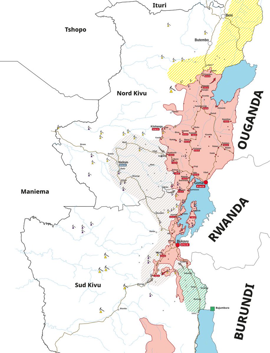 La RDC 🇨🇩 prise en étaux ? Minée par un Etat failli, une corruption endémique et une désunion dans la coalition militaire, la RDC peine à riposter. Des combats éclatent régulièrement entre l'armée et factions alliées comme les wazalendo (milices d'auto-défense).