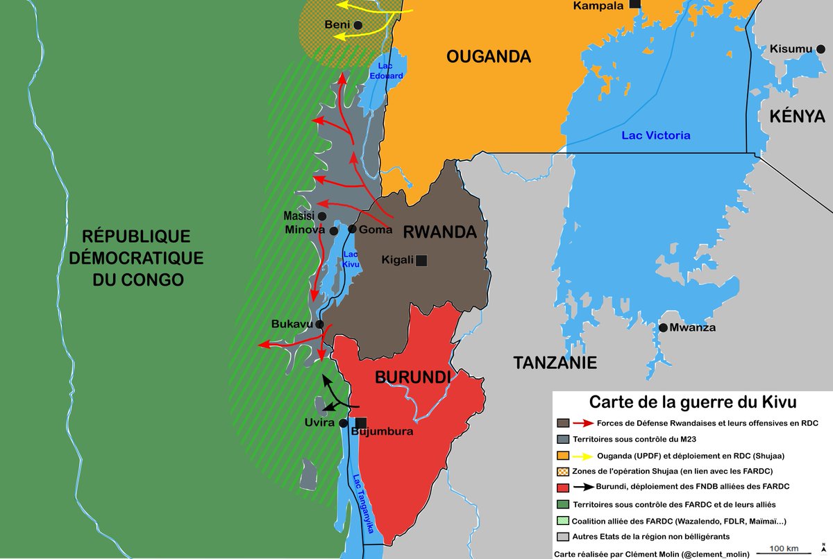 Pourquoi la RD Congo 🇨🇩, le Rwanda 🇷🇼, le Burundi 🇧🇮 et l'Ouganda 🇺🇬 sont ils tous en guerre dans l'est du Congo ? Depuis 1994, les trois Etats organisent ensemble le pillage des ressources minières congolaise, changeant régulièrement d'alliance, CARTE : 🧵THREAD🧵1/25 ⬇️