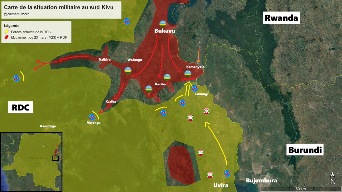 Quel rôle pour le Burundi 🇧🇮 ? Le Burundi (dirigé par les hutus) se sent menacé par l'expansion militaire rwandaise à sa frontière. Le président craint d'être renversé par une rébellion venant de la RDC, il déploie donc des milliers de soldats aux côtés des FARDC.