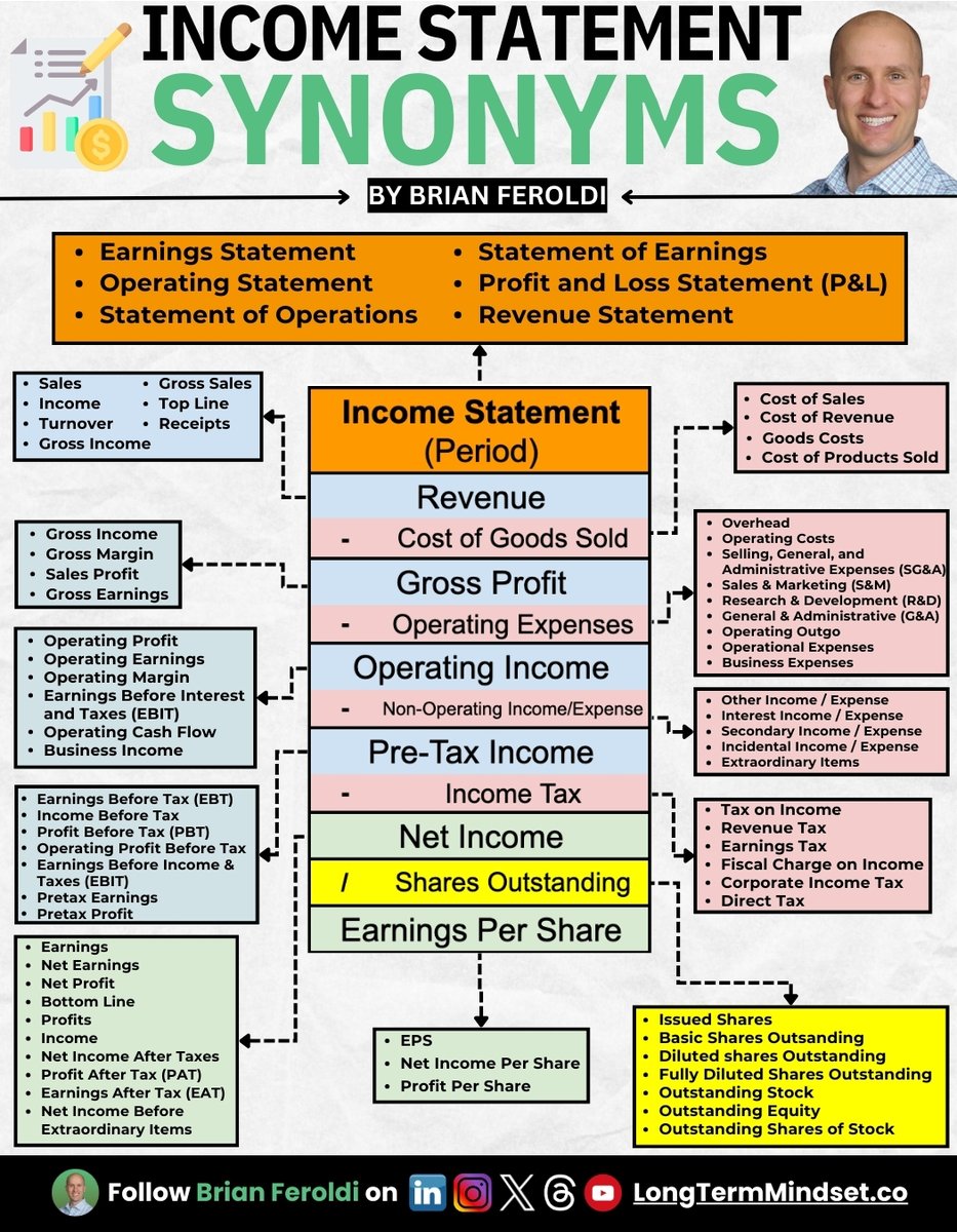 Management teams control the layout & terms used in their P&L. Here's a full list of synonyms you might see:
