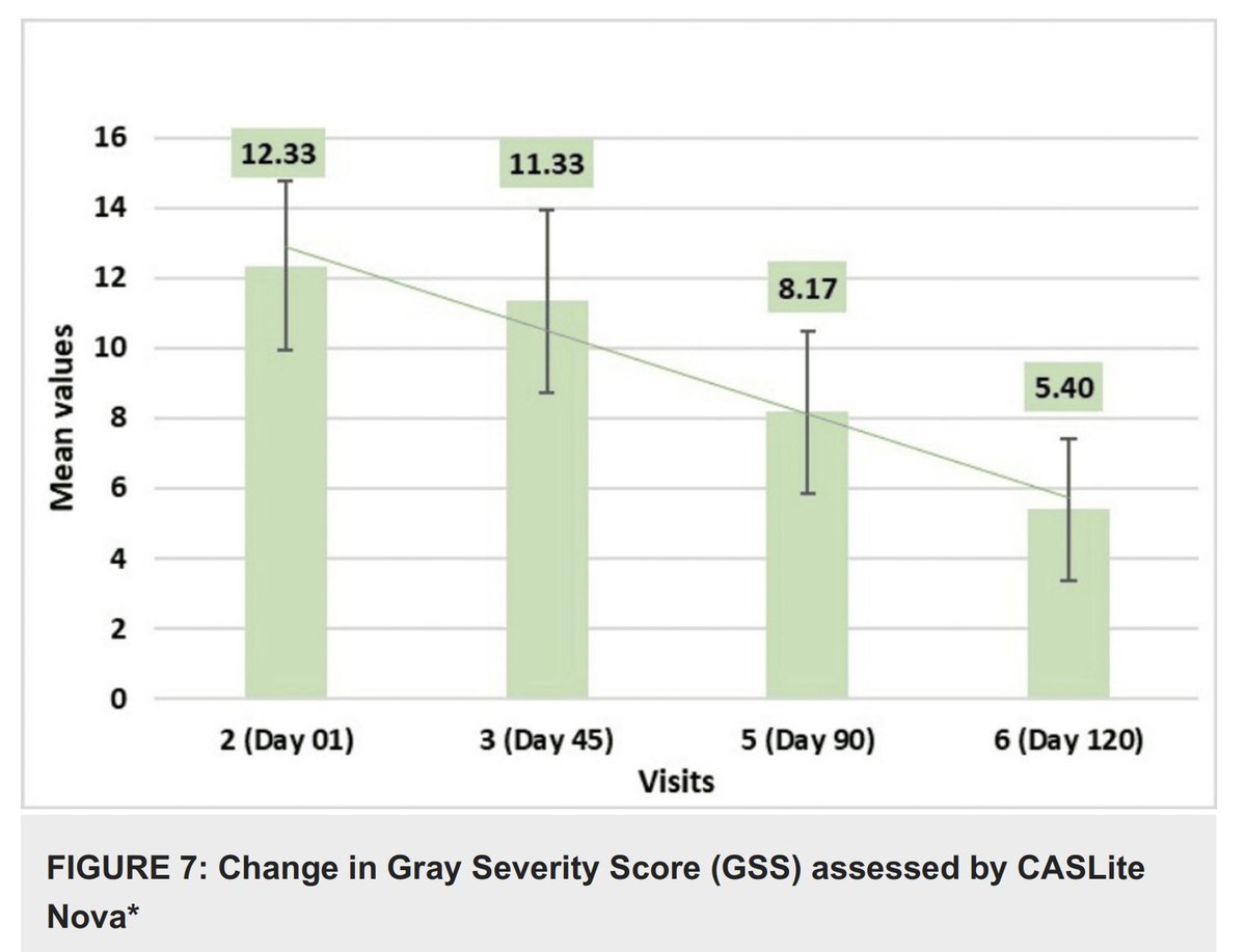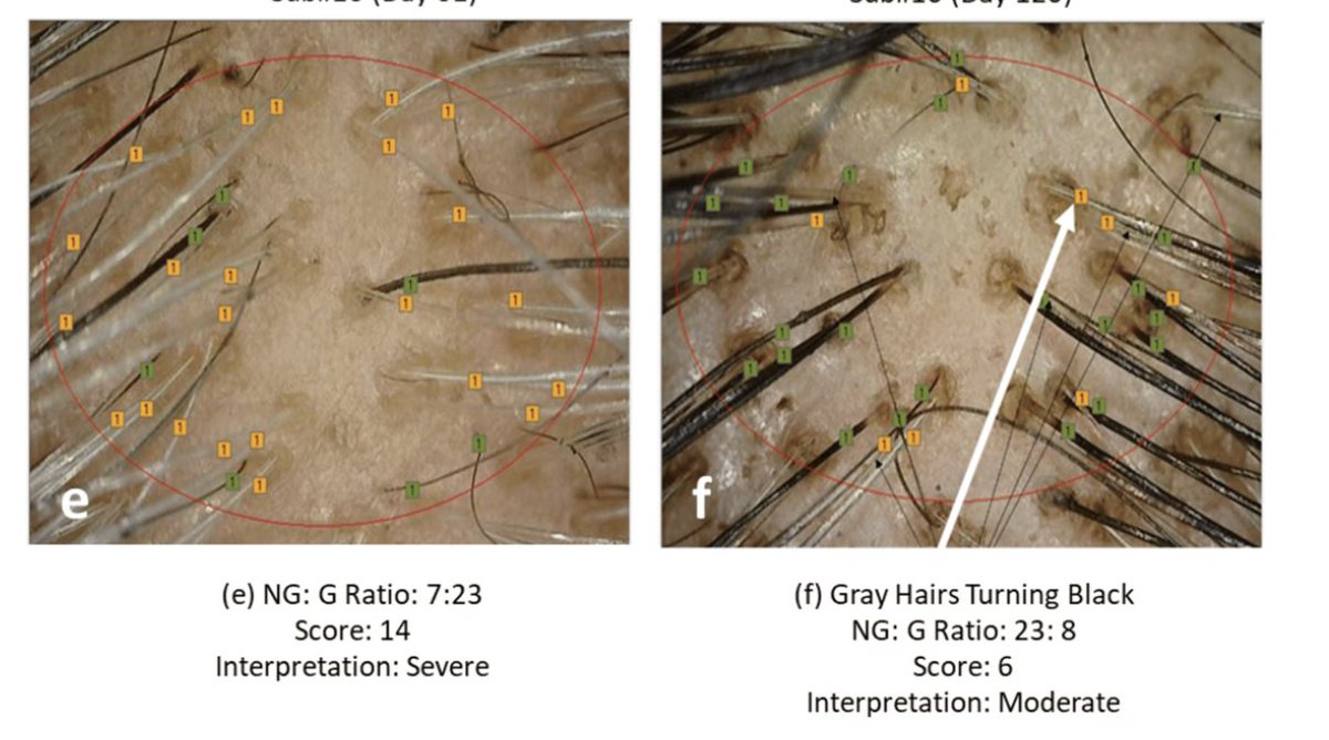 Most striking of all, the gray hair severity rating decreased by >50%. This was measured using an advanced technology that measures the amount of grey hairs on a person's scalp. All in 4 months of daily use. (5/8)