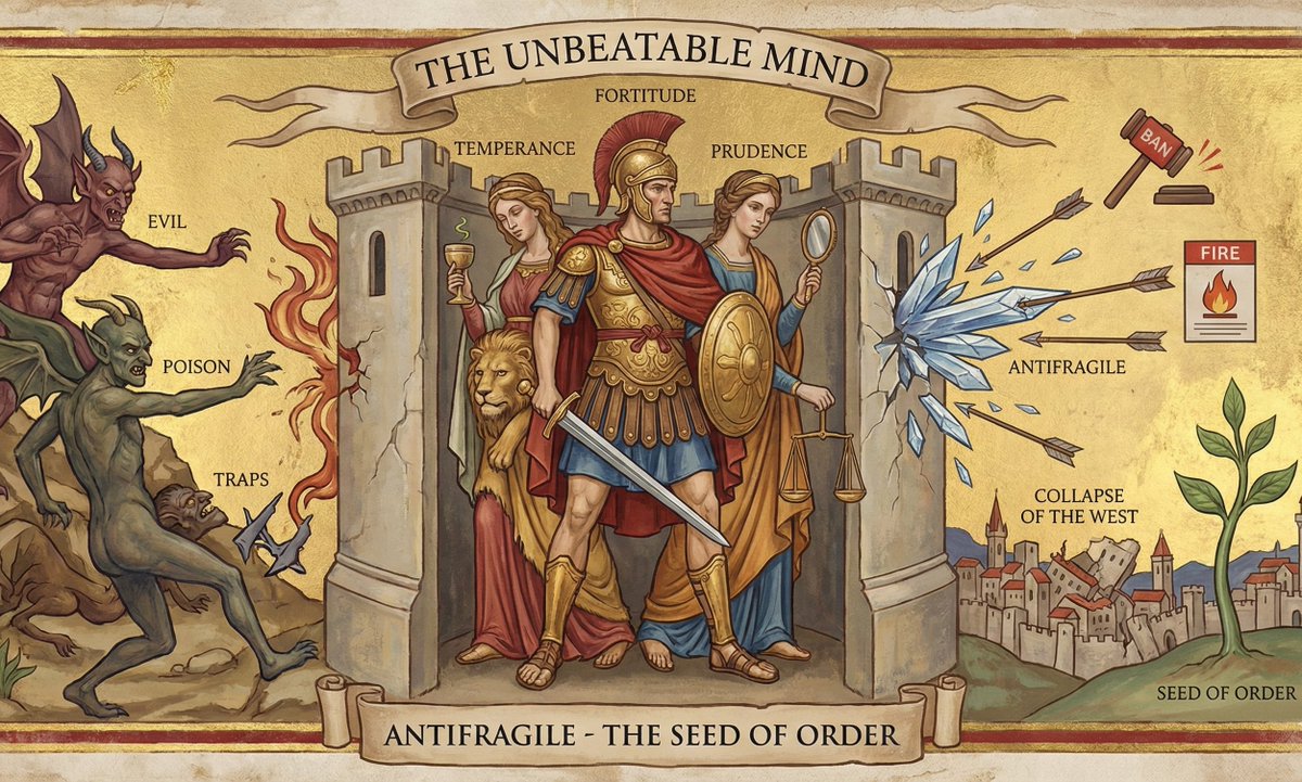 THE FORTRESS OF THE SOUL: WEAPONIZING VIRTUE IN AN AGE OF DECAY The Left Does Not Stand a Chance Once You Learn This... (The Four Cardinal Virtues, THREAD) Look around you. Society is crumbling not because of economics or policy, but because of a spiritual rot cultivated by a