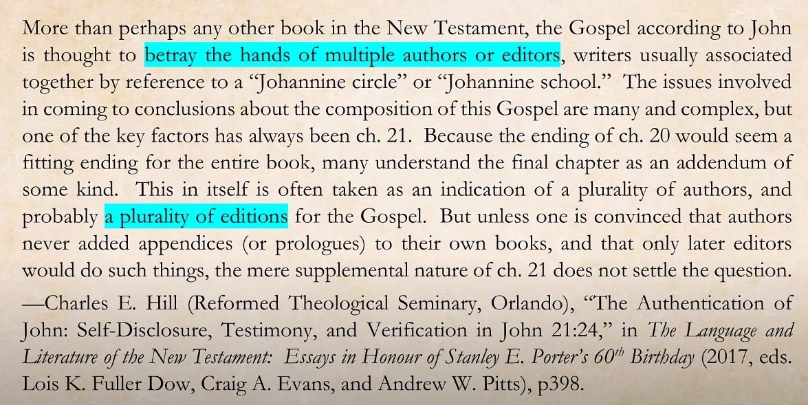 Gospel of John is Theological; Not Historical📚 The Fourth Gospel, compared with the Synoptic Gospels, has been viewed as theologically composed rather than historically oriented (W. F. Albright, From the Stone Age to Christianity, 2nd ed. (Baltimore: The John Hopkins Press,