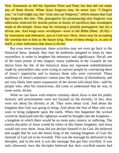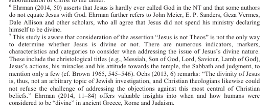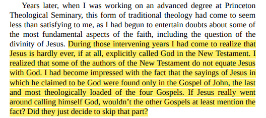 What do scholars believe?📚 Ehrman (2014, 50) asserts that Jesus is hardly ever called God in the NT and that some authors do not equate Jesus with God. Ehrman further refers to John Meier, E. P. Sanders, Geza Vermes, Dale Allison and other scholars, who all agree that Jesus did