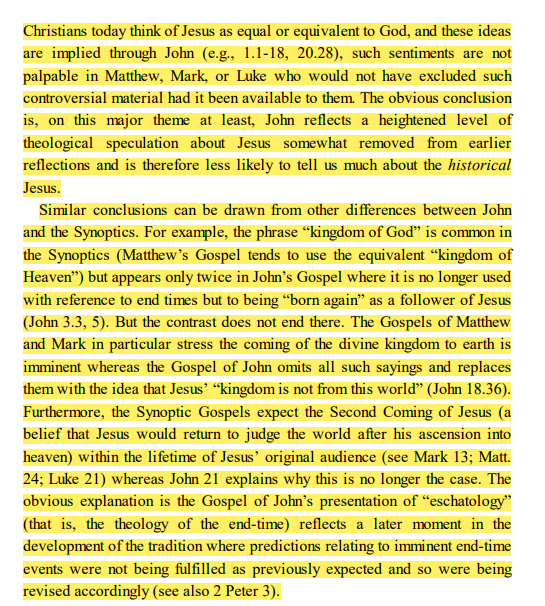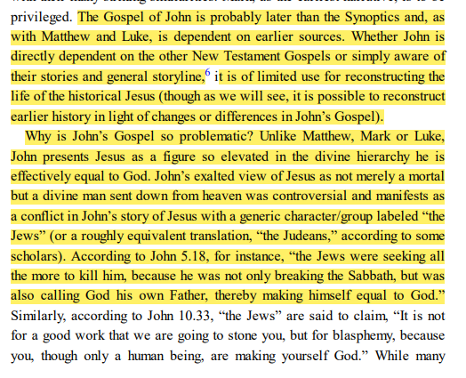 Why is John’s Gospel so problematic? From Prof. Crossley/Myles 📚 The gospel of John differs greatly from the Synoptics (Mark, Matthew, Luke) and scholars consider it to be mainly unhistorical. The gospel of John is of limited use for the historical Jesus and scholars don't