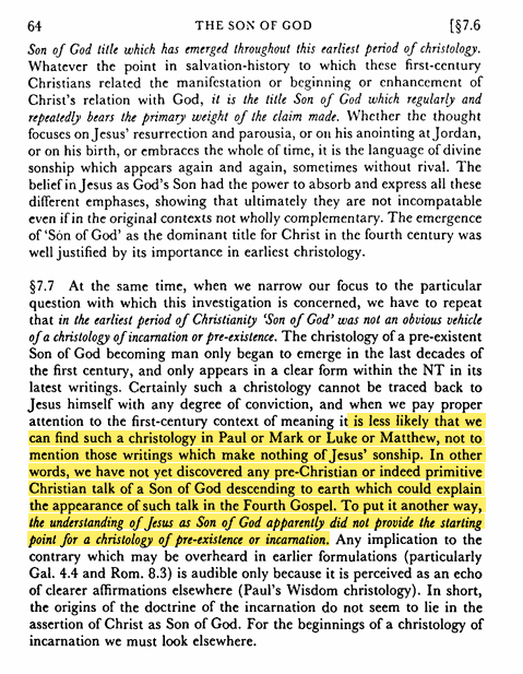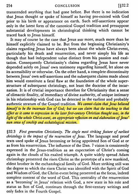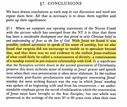 From James D.G. Dunn: "We cannot claim that Jesus believed himself to be the incarnate Son of God." "Only in the Fourth Gospel can we speak of a doctrine of the incarnation." Matt. 11.27 also does not mean Jesus is God and should be interpreted as Jesus representing Israel in